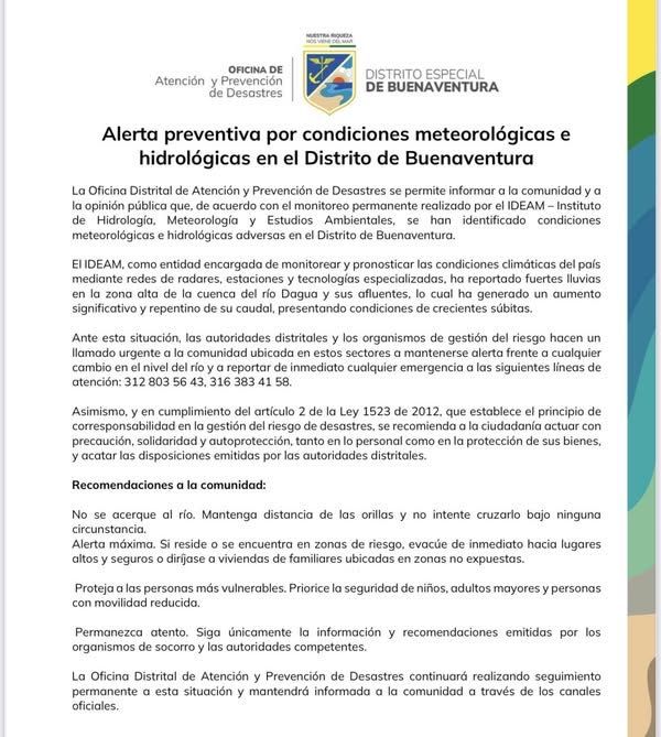 La Administración Distrital reitera su compromiso con la gestión integral del riesgo y continuará trabajando de manera articulada con las entidades locales, regionales y nacionales, con el propósito de fortalecer las acciones de prevención, atención y recuperación, en beneficio de la vida y el bienestar de todos.