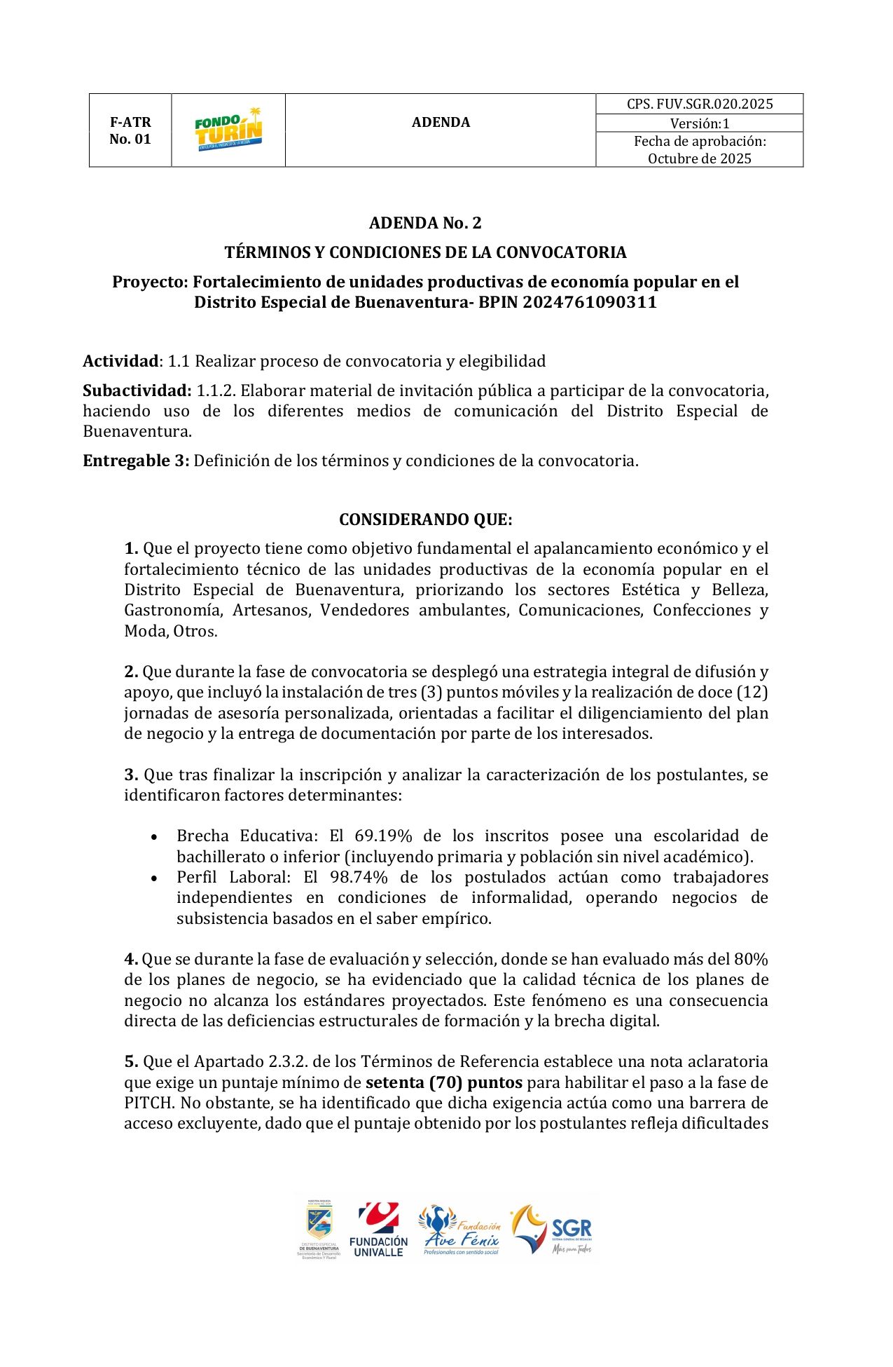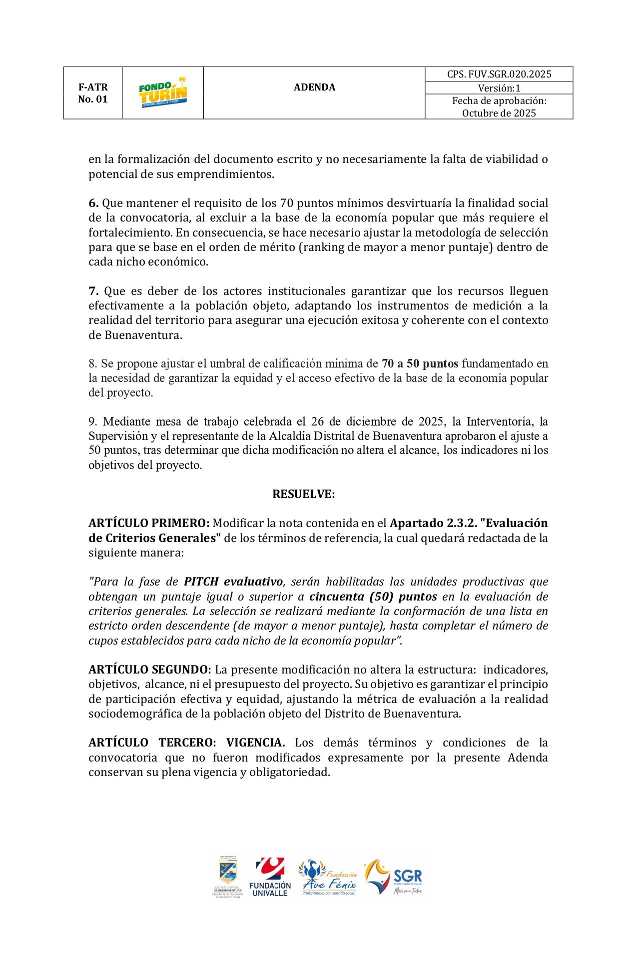 Mediante aviso publicado en las páginas web del distrito de Buenaventura Valle del Cauca y del Ministerio de Hacienda y Crédito Público desde el 28 de marzo de 2025 y el 1 de abril de 2025, respectivamente y en el diario EL TIEMPO, publicado el 1 de abril de 2025, Esmeralda Villamil López, designada por la Dirección General de Apoyo Fiscal del Ministerio de Hacienda y Crédito Público, como promotora del Acuerdo de reestructuración de pasivos del Distrito de Buenaventura Valle del Cauca, convocó conforme a lo prescrito en los artículos 27 a 31 de la Ley 550 de 1999, a todos los acreedores del distrito de Buenaventura Valle del Cauca, a las reuniones para informar, socializar y someter a votación la propuesta de pago de las acreencias reestructuradas. Las reuniones se celebraron los días 9 y 10 de abril de 2025 en las instalaciones del coliseo cubierto Roberto Lozano Batalla.