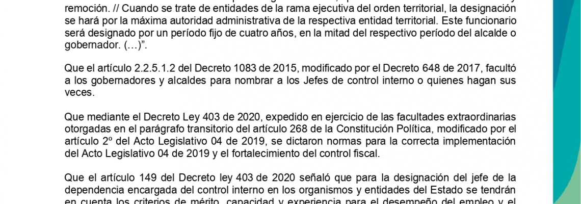 El Comité Verificador de cumplimiento de requisitos de la Alcaldía Distrital de Buenaventura, teniendo en cuenta el objetivo de transparencia que busca seleccionar a los servidores públicos partiendo de su formación, experiencia y talento y dando cumplimiento a lo establecido en la Constitución Política de Colombia, la ley 87 de 1993 modificada por la Ley 1474 de 2011, Ley 1437 de 2011, Decreto 1083 de 2015, Artículo 149 del Decreto 403 de 2020, Decreto 989 de 2020, Decreto 360 de noviembre 24 de 2025 y demás normas que regulan la materia proceden a publicar conforme al cronograma establecido en el artículo 5º del Decreto 360 d noviembre 24 de 2025 Por medio del cual se da apertura a Convocatoria No. 001 de 2025 para proveer el cargo de Jefe de Oficina de Control Interno del Nivel Central y de los Institutos Descentralizados del Distrito de Buenaventura para el periodo 2026- 2029, el listado de los candidatos seleccionados dentro de la convocatoria en mención, así: