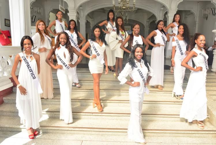 11 de las candidatas representan las comunas del Distrito, excepto el número 5, debido que no envió participante. Igualmente, están las representantes de corregimiento Bazan Bocana, Universidad del PacÃfico y el gremio de comerciantes.