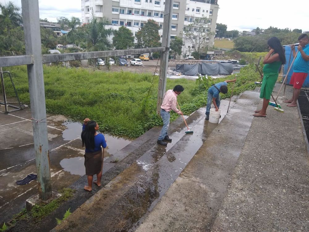 Buenaventura, noviembre 15 de 2019. La AlcaldÃa Distrital a través de la SecretarÃa de Convivencia para la Sociedad Civil, en articulación con la población indÃgena ubicada transitoriamente en el CAIJU, realizó jornada de limpieza del lugar.