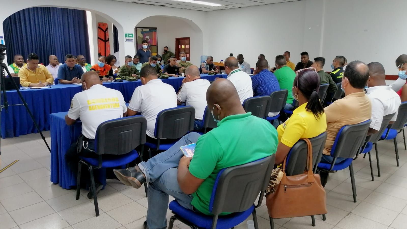 Buenaventura, D.E, 06 de octubre de 2022. En reunión llevada a cabo en la Cámara de Comercio de la ciudad, las autoridades civiles, entidades públicas y privadas y la Fuerza Pública, expusieron sus Planes de Contingencia y el compromiso que asumen para que el comercio y la ciudadanía en general, puedan vivir la Temporada Decembrina con las mejores condiciones.