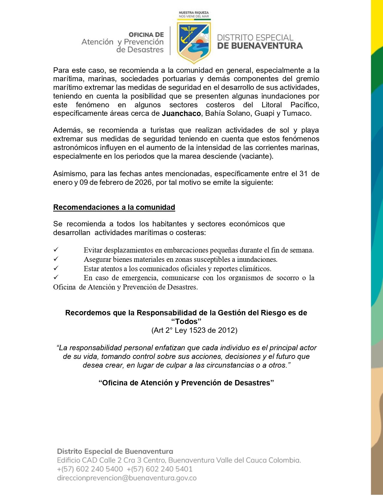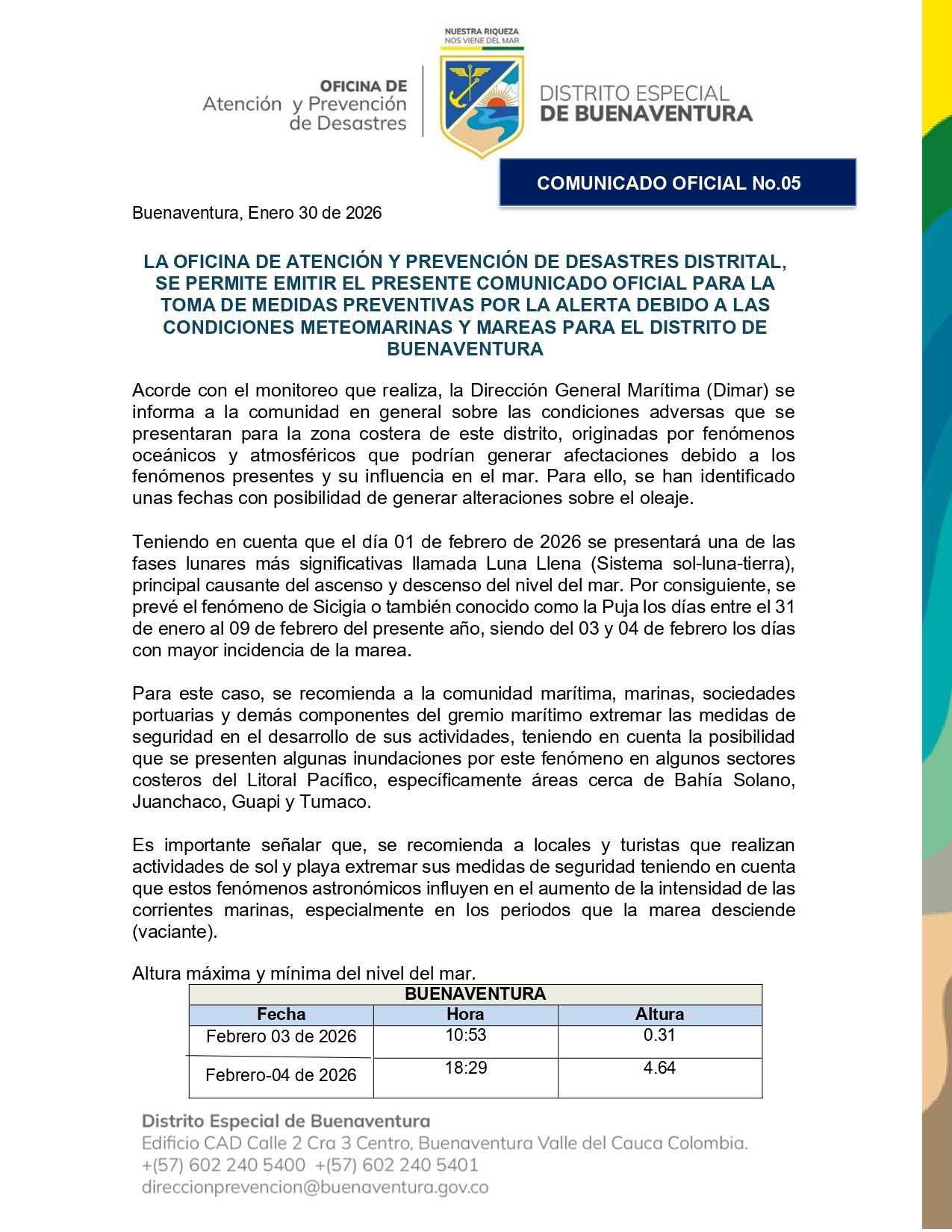 Comunicado Oficial No. 05 Marea de Sizigia 30 de enero 2026