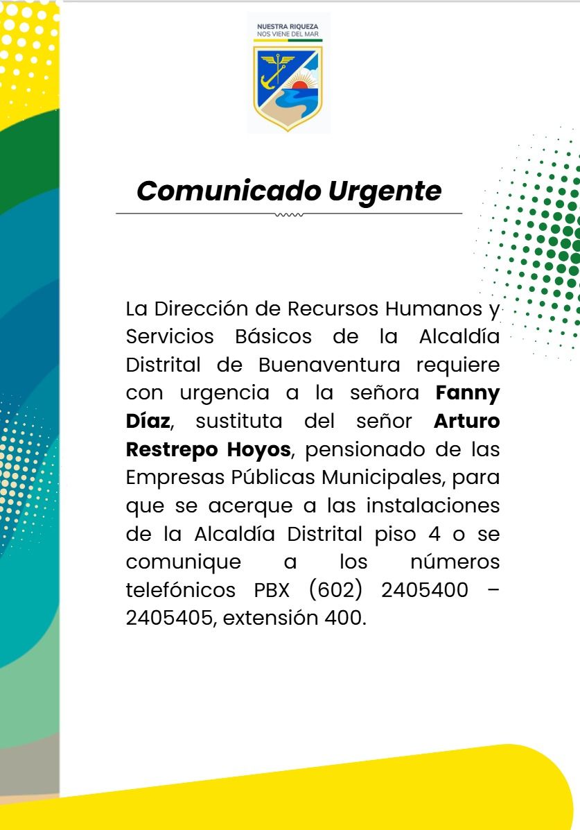 Comunicado Urgente de la Dirección de Recursos Humanos y Servicios Básicos