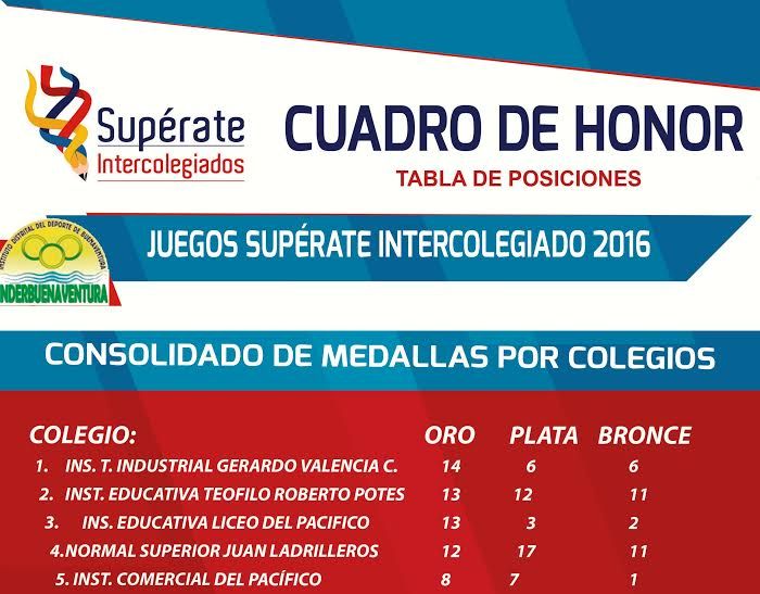 Luego de 14 dÃas de competencias donde participaron los estudiantes de la zona rural y urbana del Distrito de Buenaventura, la Institución Educativa Gerardo Valencia Cano, (ITI), se coronó como la campeona del certamen deportivo estudiantil más grande de la ciudad, al conseguir 14 medallas de oro, 6 de plata y 6 de bronce.