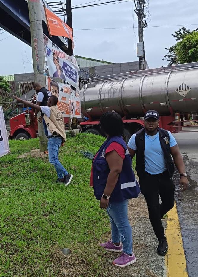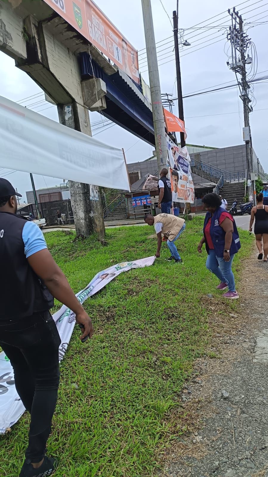 “Queremos informar a la comunidad y a los partidos políticos que estamos retirando toda la propaganda electoral ubicada cerca de los puestos de votación y en los puentes peatonales. Actuamos conforme al Decreto 0399 de 2025, el cual establece la prohibición de publicidad electoral a menos de 200 metros de estos lugares”, señaló Cirila Sánchez Orobio, jefa de la Oficina de Control Físico.