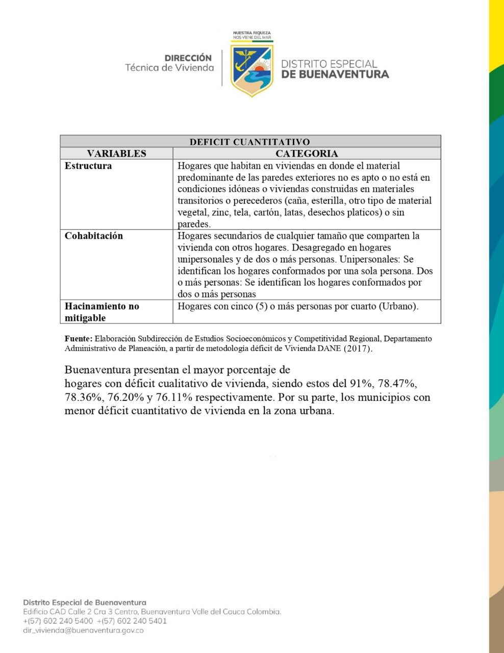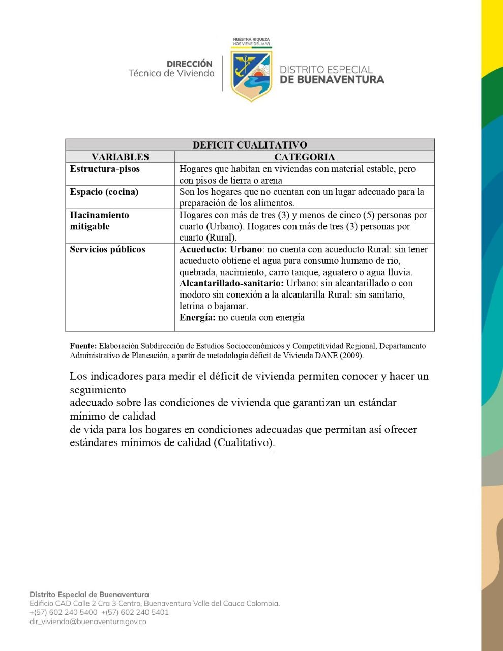 Indicadores para medir deficit de vivienda - Direccion Tecnica de Vivienda