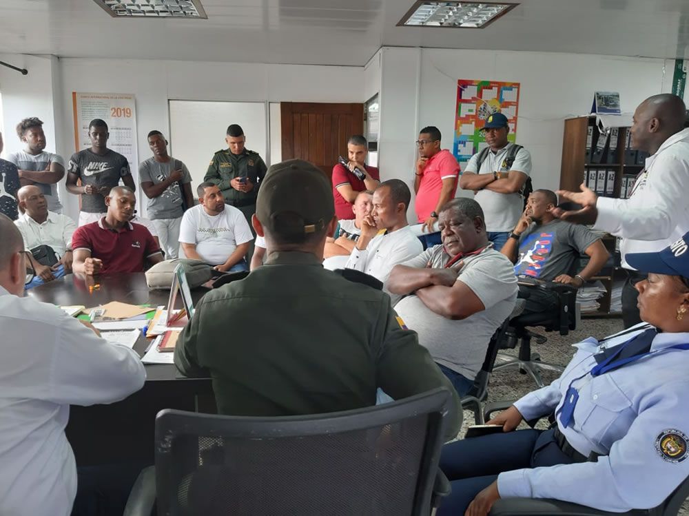 Buenaventura, noviembre 7 de 2019. AlcaldÃa distrital a través del secretario de Gobierno, José Luis Bernat Fernández, representantes del  gremio transportador,  ATRANSMAFLUPA, comunidad del sector de La Palera, Edil localidad 1 y autoridades de policÃa, se reunieron con voceros de INVÃAS para  socializar la construcción de bandas reductoras en el sector del Piñal.