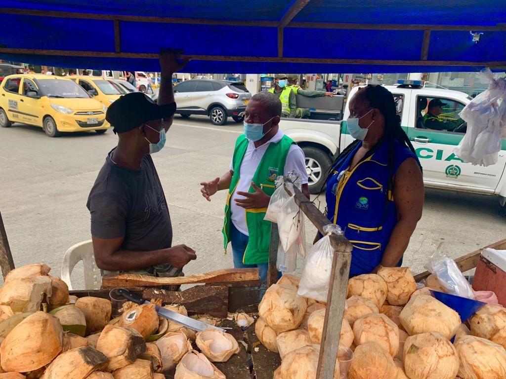 Buenaventura, 28 de octubre de 2021. En cumplimiento del Horcón No.1 del Plan de Desarrollo, funcionarios de la Dirección Técnica Ambiental, Control Físico, Establecimiento Público Ambiental, BMA y RCN Radio, realizaron un recorrido de sensibilización ambiental en la zona comercial de la calle primera.